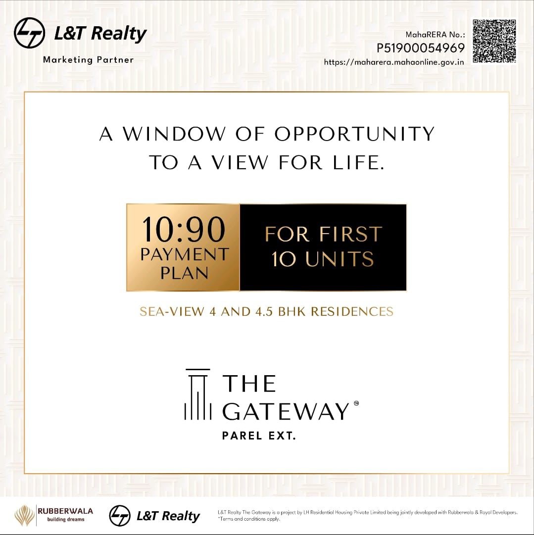 L&T The Gateway Sewri will be constructed on 2.5 acres of land parcel, 1 tower with G+50 floors having 3 BHK, 4 BHK, 4.5 BHK premium residences. L&T The Gateway Project is Near Trans Harbour link road, Sewri, Mumbai with - Sewri Railway Station - 1.3km, Sewri Cross Road - 3.2km and Dadar Railway Station - 4.6km. L&T Sewri Mumbai Project First is Internal amenities - Vitrified Tiles, Granite Kitchen, Stainless steel sink & many more. L&T Realty Se...ri Project has 40+ luxurious amenities with likes of - Multipurpose court, Multipurpose hall, Indoor games, Gymnasium, Kid's play area and Swimming pool & Many More. The Gateway Sewri Project has one type of car parking facility - Ground. L&T Realty Projects Possession - Rera Possession - December 2027 and Target Possession - December 2027. Carpet Area & Floor Plan of LnT Sewri has 3BHK, 4BHK, 4.5BHK premium residences with - 3BHK - (1258 - 1455) sqft, 4BHK - 1955 sqft and 4.5BHK - 2251 sqft. L&T The Gateway Mumbai Project maintenance varies with the configuration and the carpet area which are as follows- 3BHK -Rs 12500 per month, 4BHK -Rs 18500 per month, 4.5BHK -Rs 22500 per month. L&T The Gateway Prices & its details can be found in the price section & L&T The Gateway Sewri brochure can be downloaded from the link mentioned below. Project has been praised by the home buyers & L&T Realty Sewri review is 4 out of 5 from over all the clients who have visited the site.